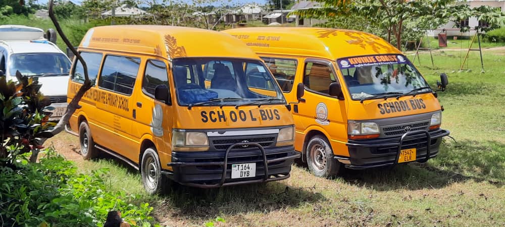 In der Karte sind die zwei Buslinien zu erkennen, die täglich abgefahren werden müssen. Bis vor Kurzem wurde für die blaue Route das fast kaputte Auto von Edwin Fussi, dem Direktor der Schule, benutzt. Jetzt haben wir dafür einen zweiten Schulbus kaufen können!